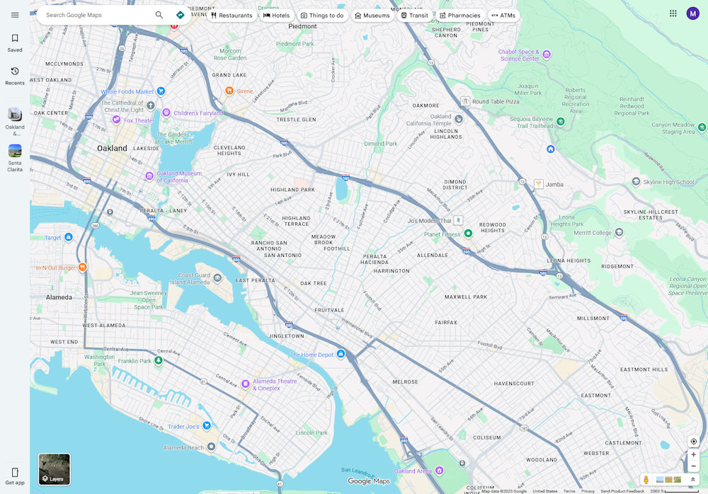 On this map, my house is upper right where the blue ‘house’ symbol stands, while just south of Coast Guard Island, on Alameda itself, is where my partner’s son and his wife live, by the Alameda Harbor.