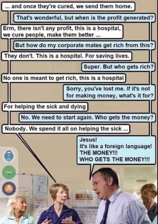 Beginning with this graphic that’s been floating around on Facebook for several years, and popped up again today. It captures a certain kind of capitalist/conservative worldview, that society is compose of corporate money-makers, and moochers, and the only real purpose of life is to make money. And ironically, both groups will claim to be Christian.