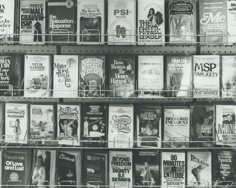Here’s what I remember. (I’ve written some of this history in this personal history post: 15 Ways of Buying a Book, Part 1.) As a teenager I bought [mass-market] paperback books from newsracks in drug stores and markets, including Wayne’s Super Value market in Cambridge Illinois, where I spent a couple summers, on those spinner stands. This was the late 1960s. Paperbacks cost 60 cents or 75 cents. As years passed prices crept up to 95 cents.