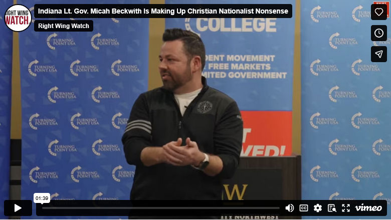 Right Wing Watch, Kyle Mantyla (who writes so many of the site’s articles it might as well be considered the Kyle Mantyla blog), 30 Mar 2026: Indiana Lt. Gov. Micah Beckwith Is Making Up Christian Nationalist Nonsense